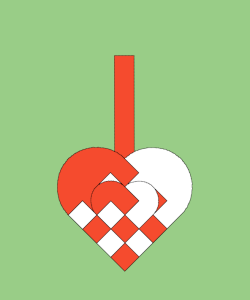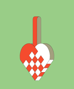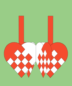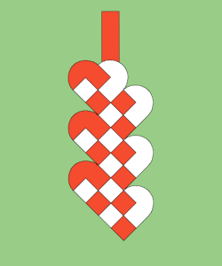 Hjertet flettes ved at det "røde" og det "hvide" stykke skubbes sammen. Til at starte med skal man sørge for at det "røde" vinkelstykke sidder yderst - både på forsiden og på bagsiden. Så skubber man sammen indtil vinkelstykker igen mødes. Denne gang skal man sørge for at de "røde" vinkelstykker sidder inderst - både på forsiden og på bagsiden.