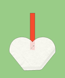 Inde i hjertet vil der nu være to "toppe" og tre "dale". Toppene skal trykkes ned så de bliver til dale. Slut af med at lime hanken på.