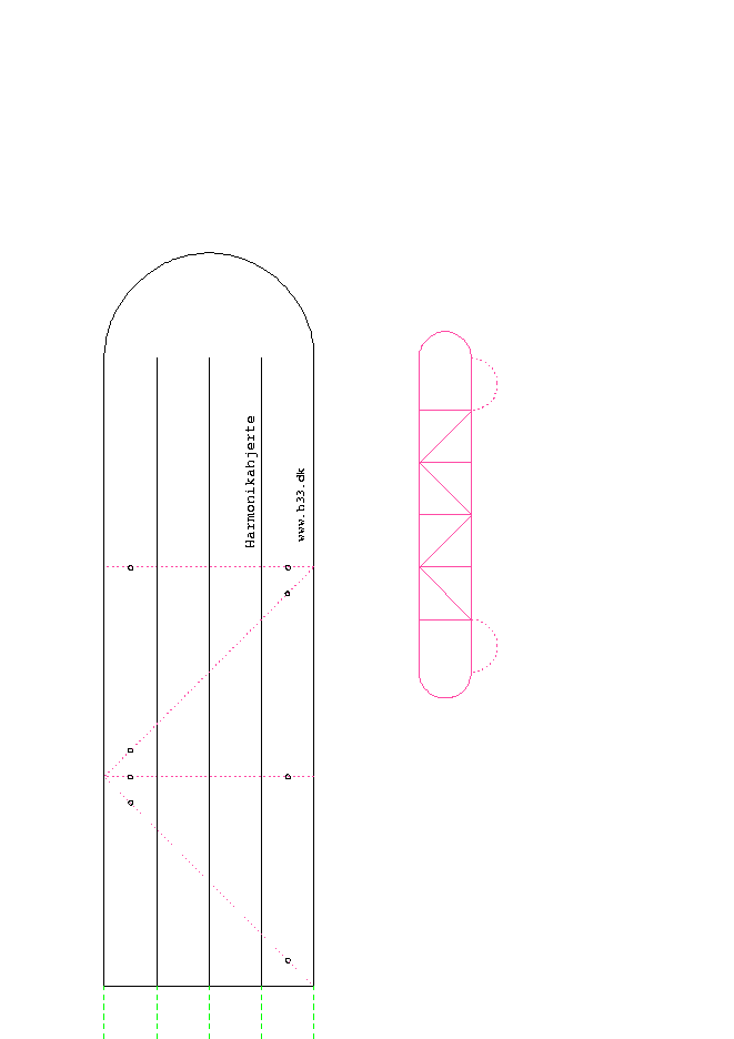 "Harmonikaen" kan laves længere ved at lave skabelonen længere, og dermed få flere lag der skal flettes.