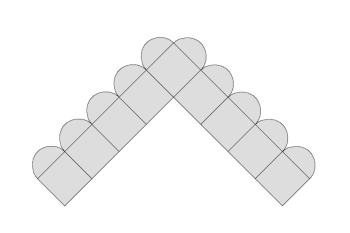 Så lægges de brede stykker ind mellem de smalle stykker. Sørg for at de yderste strimler på de brede stykker kommer udenfor.