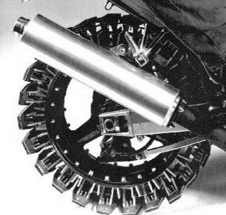 Fælgen er dækket af 24 enheder, som består af en plade anbragt på en aksel, og to stødabsorberende dupper der begrænser pladens udsving. Pladerne er buede og har et lag gummi påsat. Når hjulet hælder til siden vil pladerne vippe, så hele fladen fortsat har kontakt med jorden.