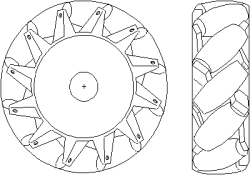 Hjulet har et antal fritløbende ruller rundt langs kanten. Rullerne er skråtstillede med 45 grader. Når hjulet roterer vil det skabe træk i rullernes længde-retning. Ved at kombinere flere af disse hjul kan man få trækkraft i en vilkårlig retning. Rullerne er formet så hjulets profil er cirkelrund, for at mindske vibrationer under kørslen.